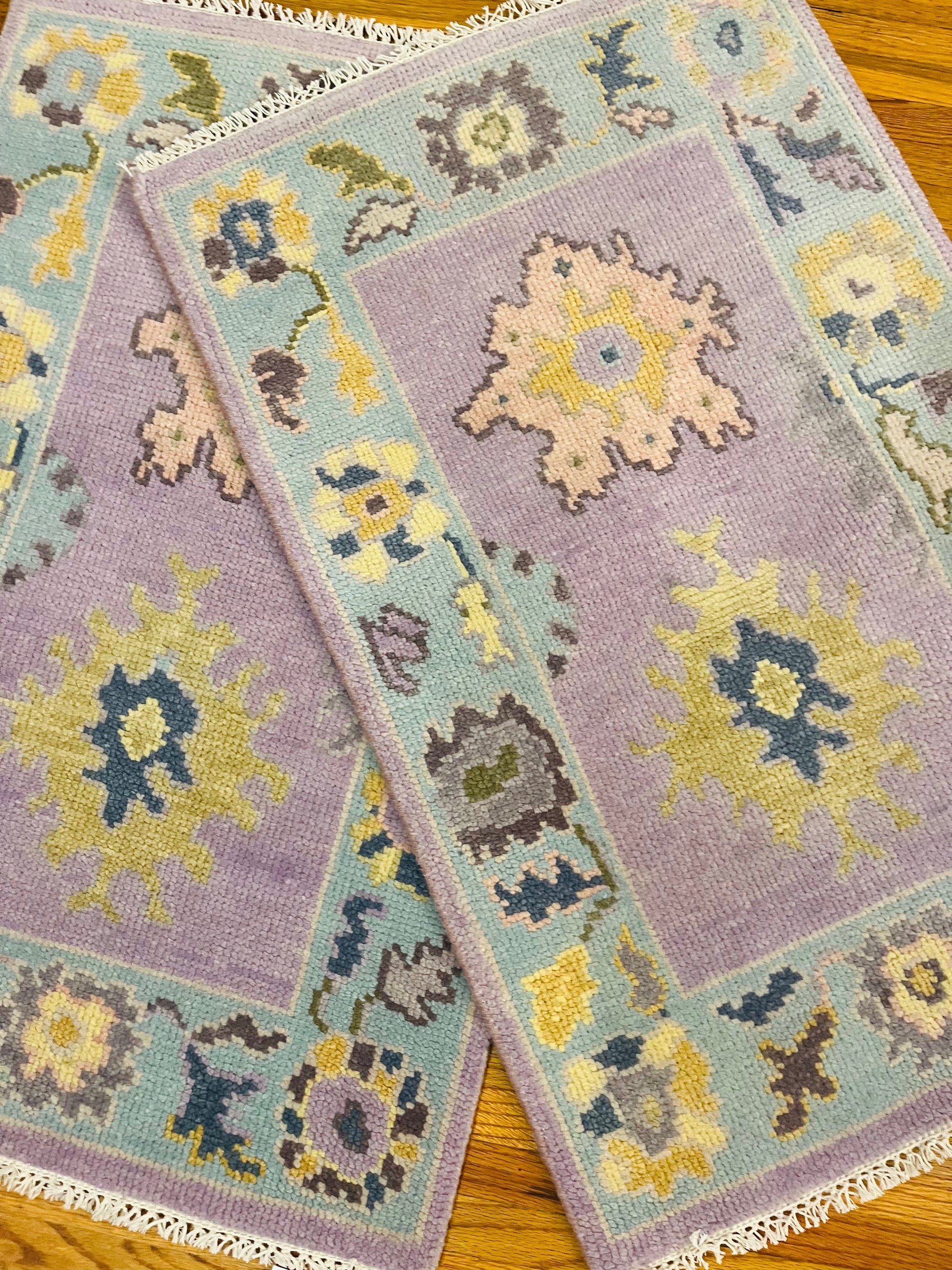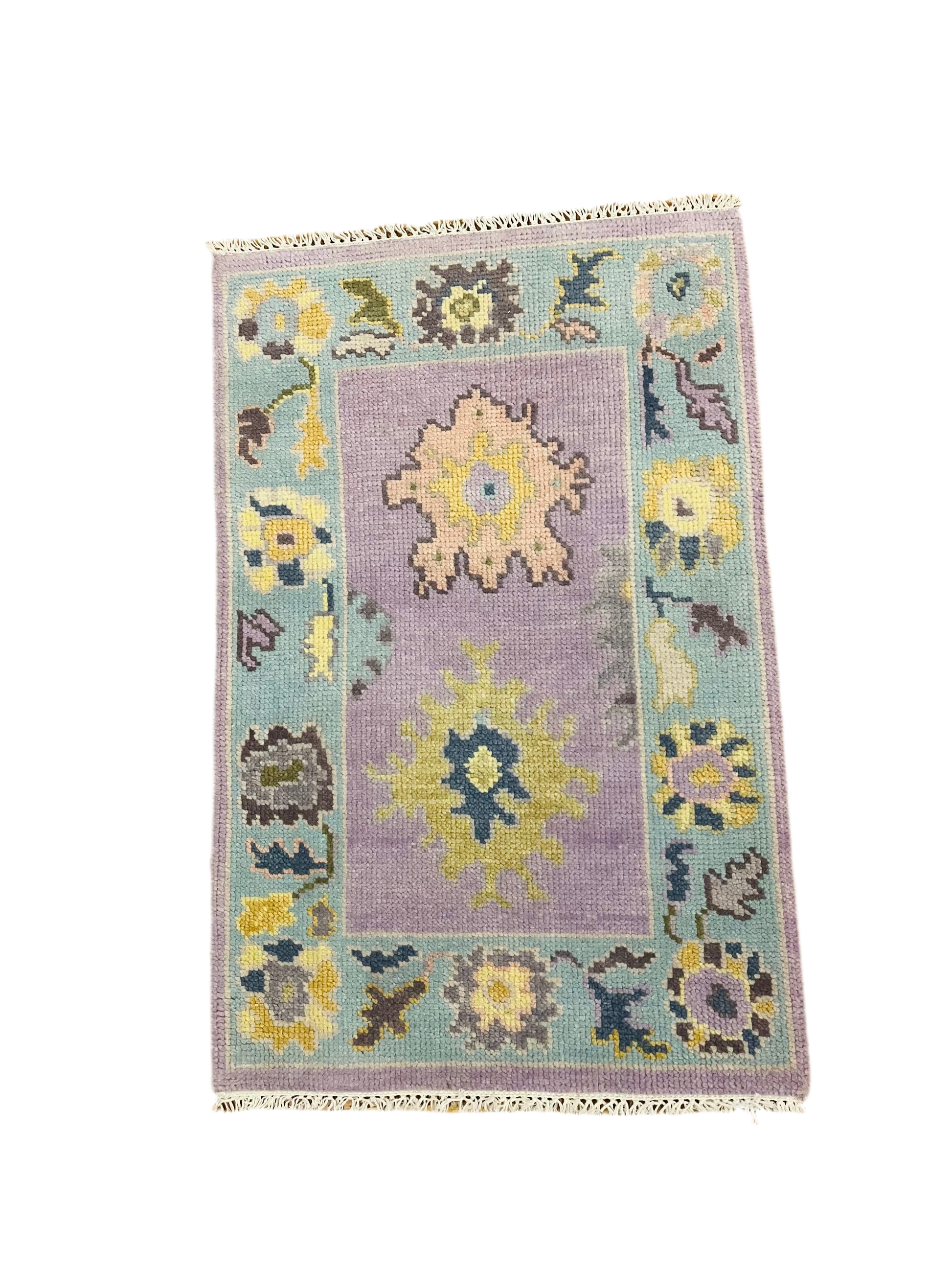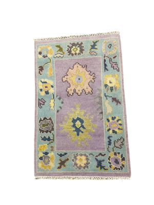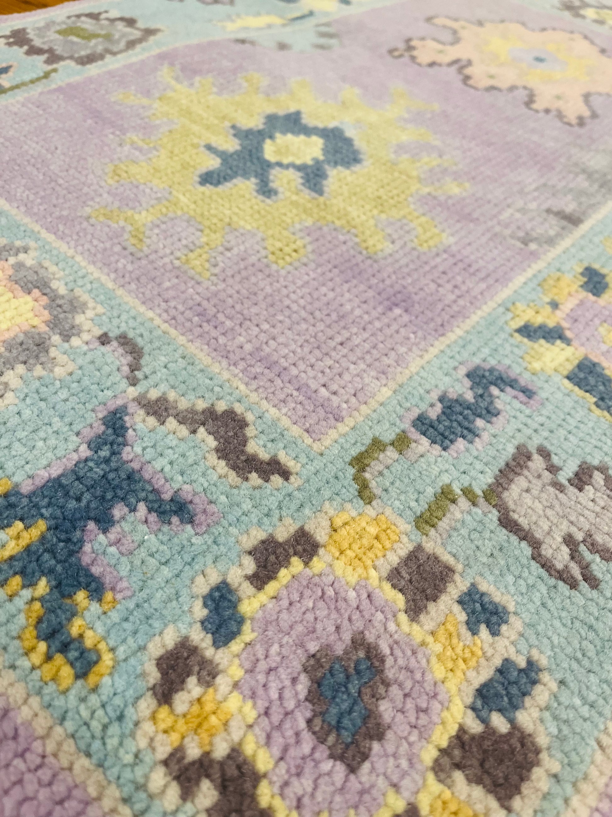Modern Wool Oushak Rug, hand knotted with 100% New Zealand wool using a Turkish knot.