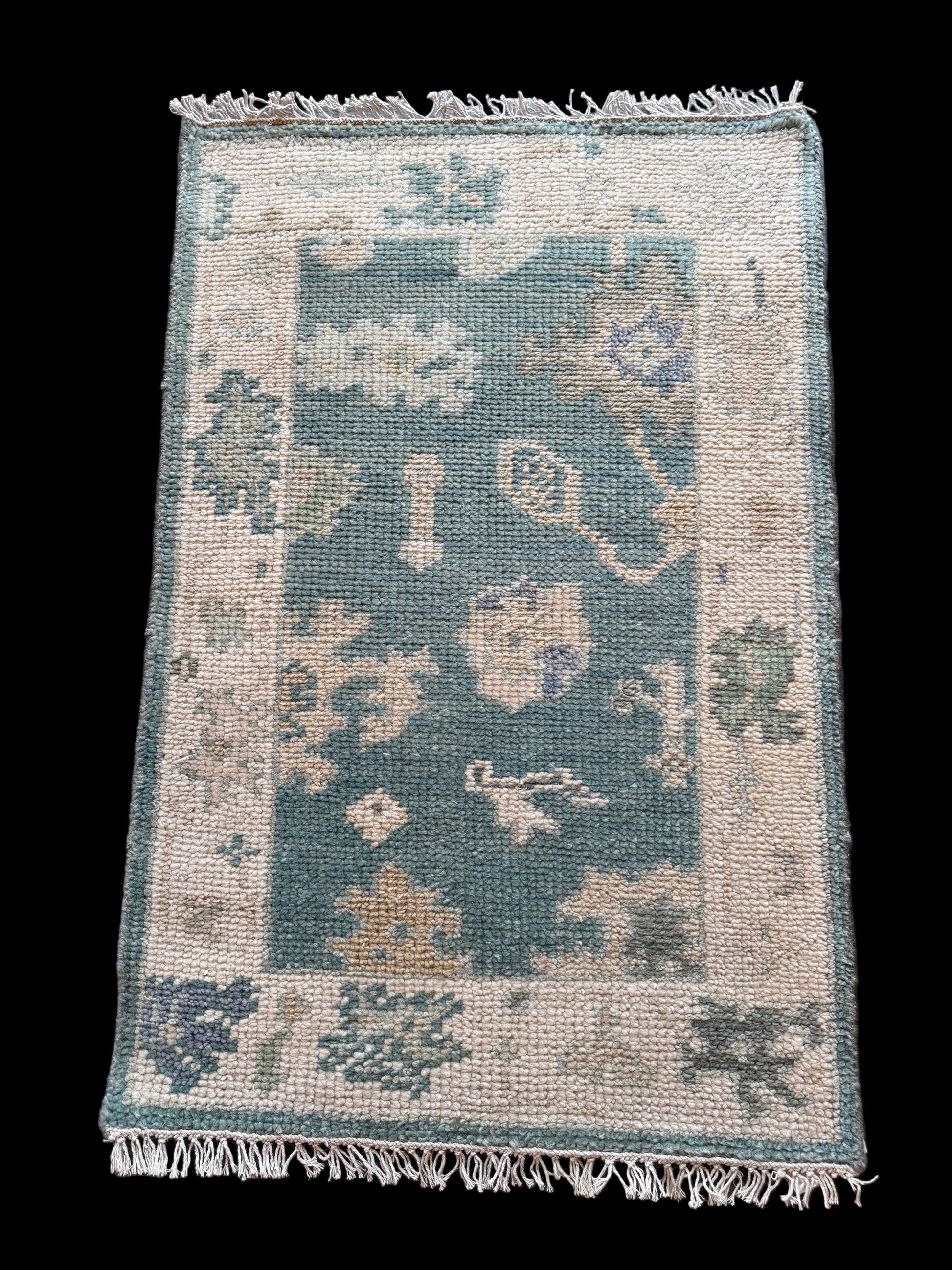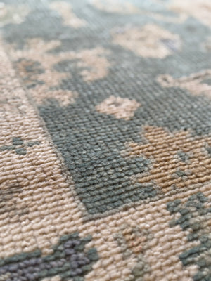 Modern Wool Oushak Rug, hand knotted with 100% New Zealand wool using a Turkish knot.