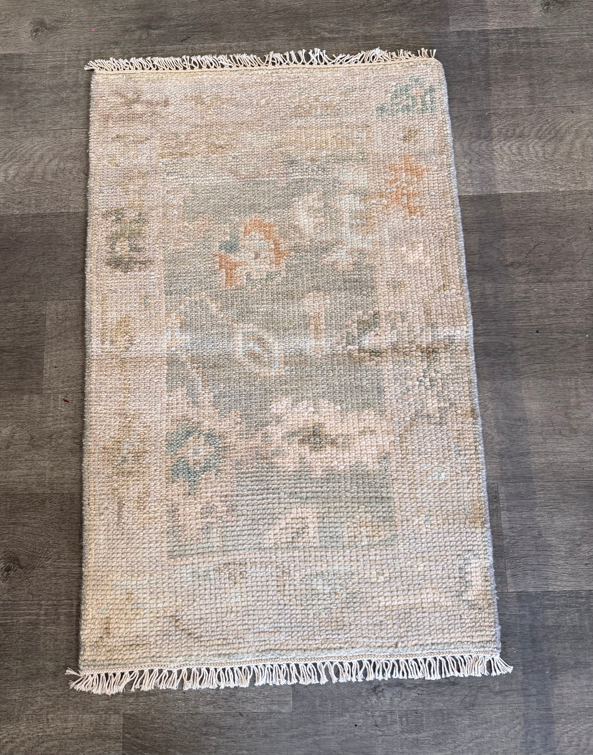 Modern Wool Oushak Rug, hand knotted with 100% New Zealand wool using a Turkish knot.