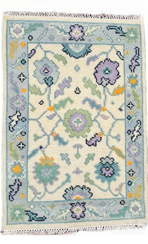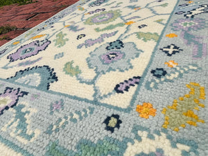 Modern Wool Oushak Rug, hand knotted with 100% New Zealand wool using a Turkish knot.