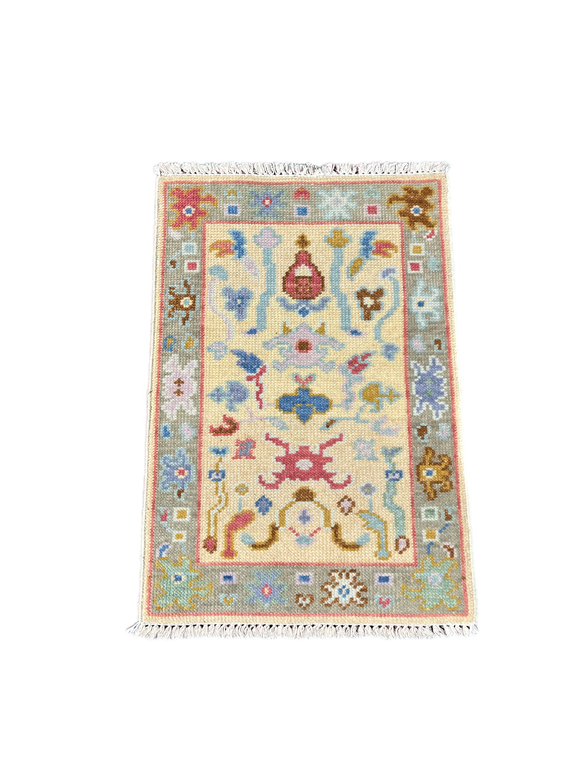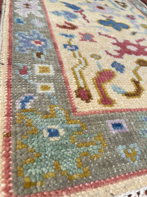Modern Wool Oushak Rug, hand knotted with 100% New Zealand wool using a Turkish knot.