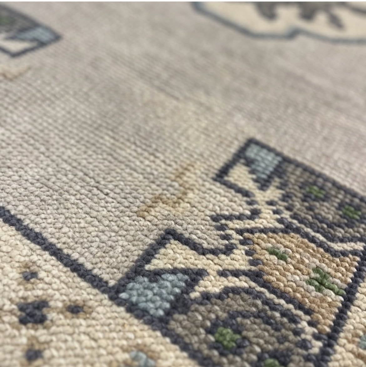 Modern Wool Oushak Rug, hand knotted with 100% New Zealand wool using a Turkish knot.