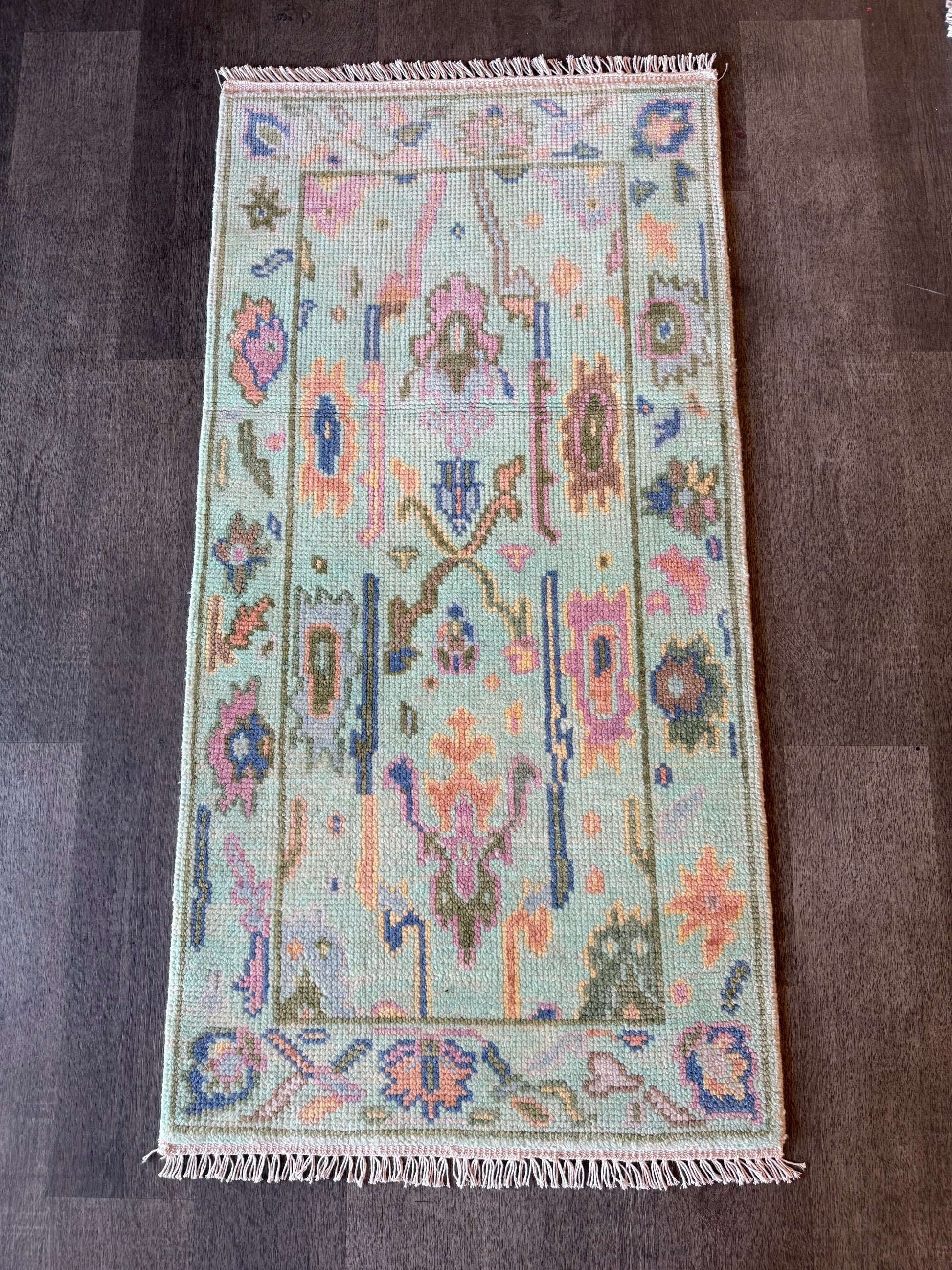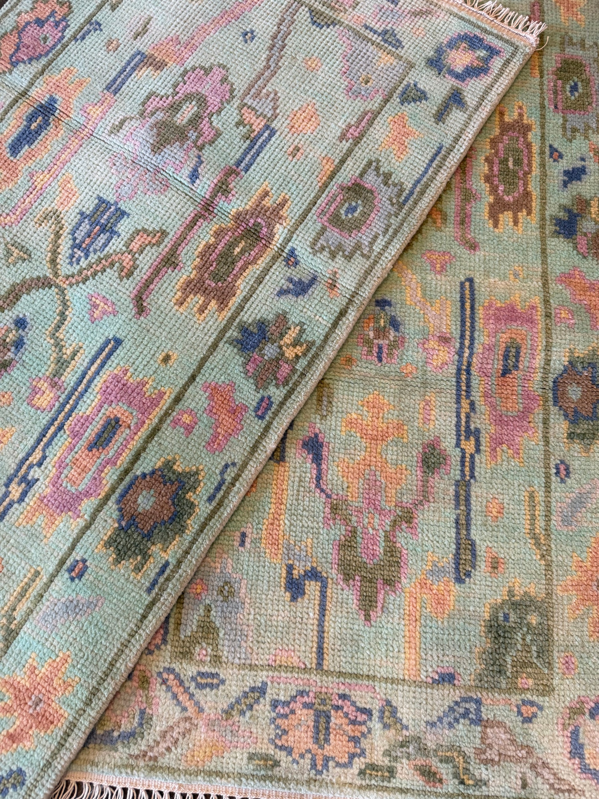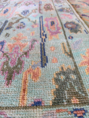 Modern Wool Oushak Rug, hand knotted with 100% New Zealand wool using a Turkish knot.