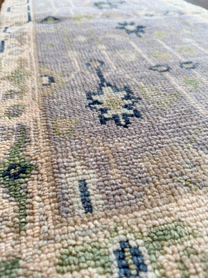 Modern Wool Oushak Rug, hand knotted with 100% New Zealand wool using a Turkish knot.