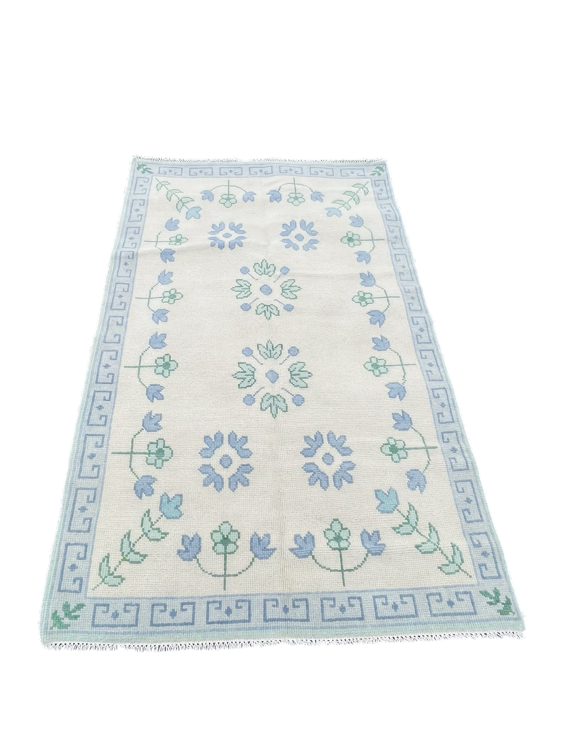 Modern Wool Oushak Rug, hand knotted with 100% New Zealand wool using a Turkish knot.