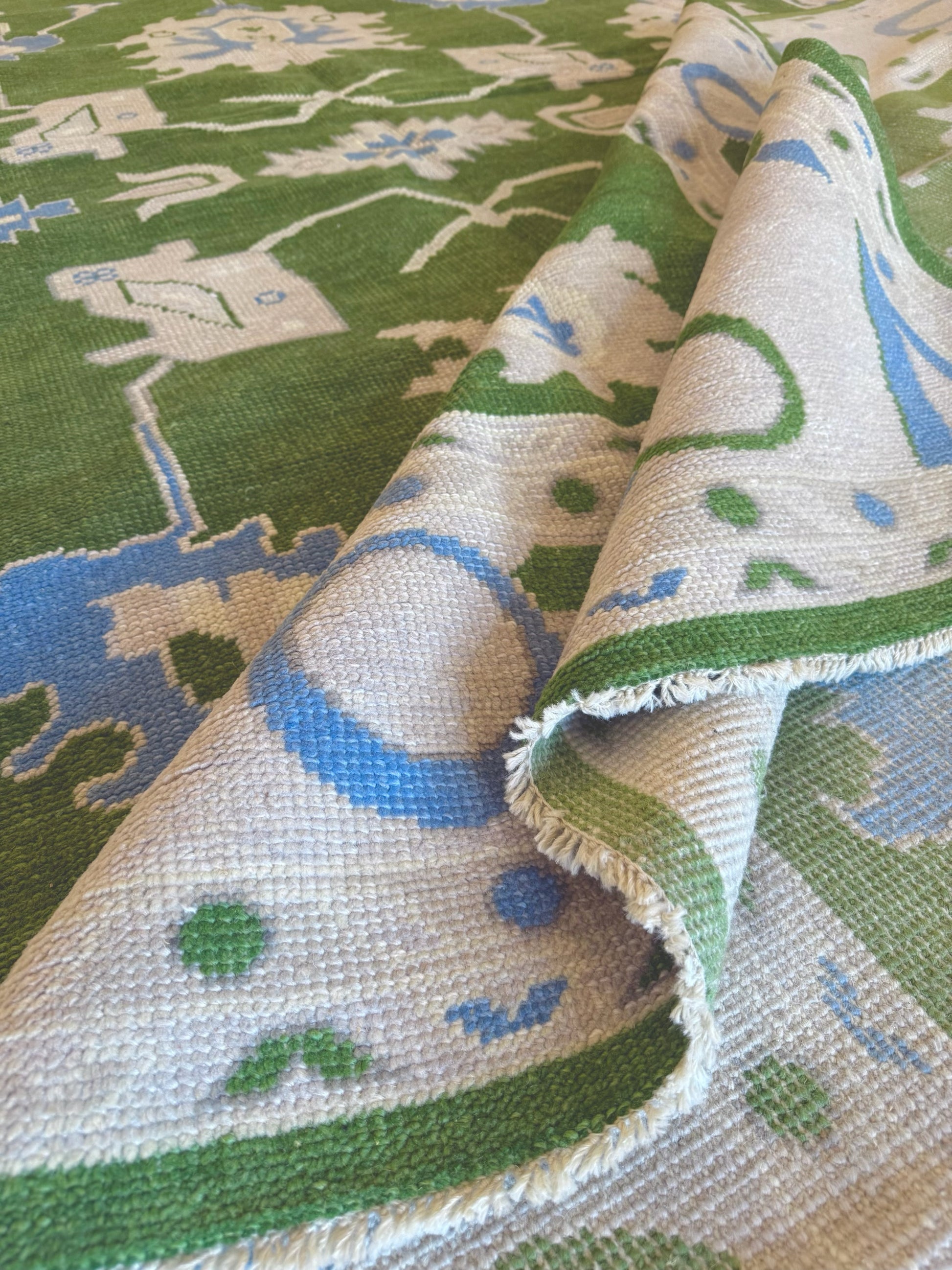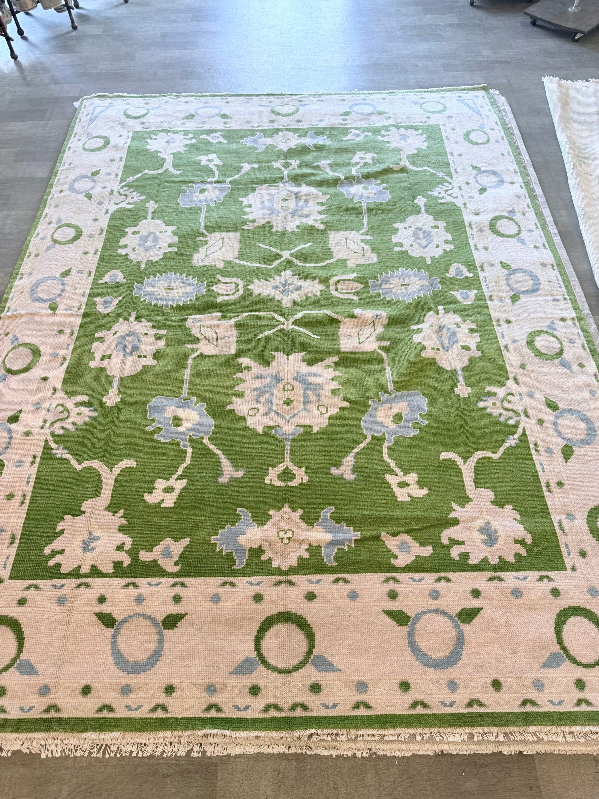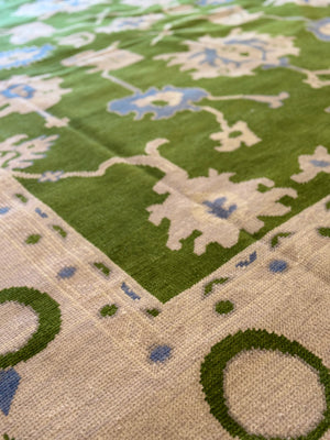 Modern Wool Oushak Rug, hand knotted with 100% New Zealand wool using a Turkish knot.