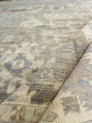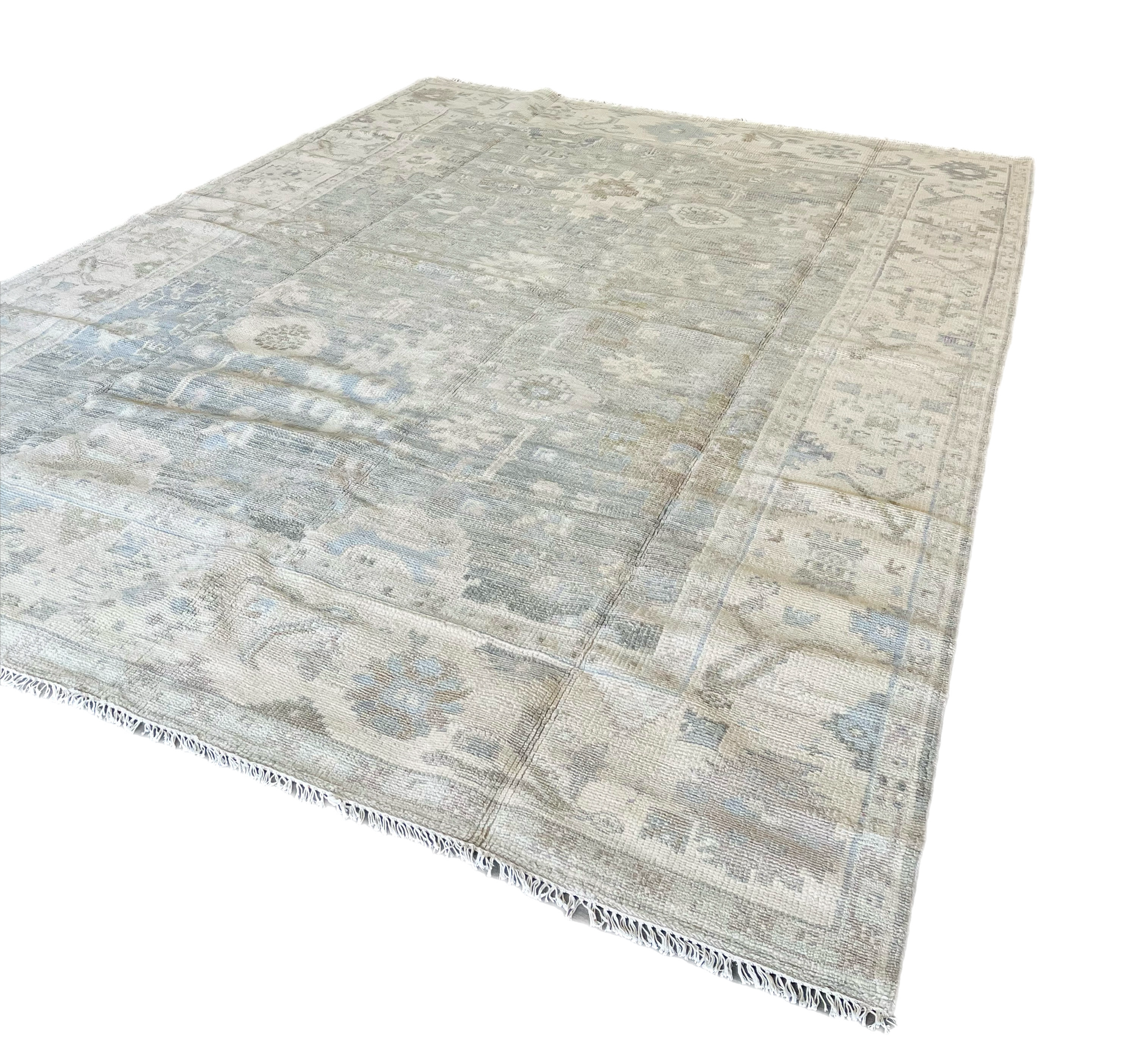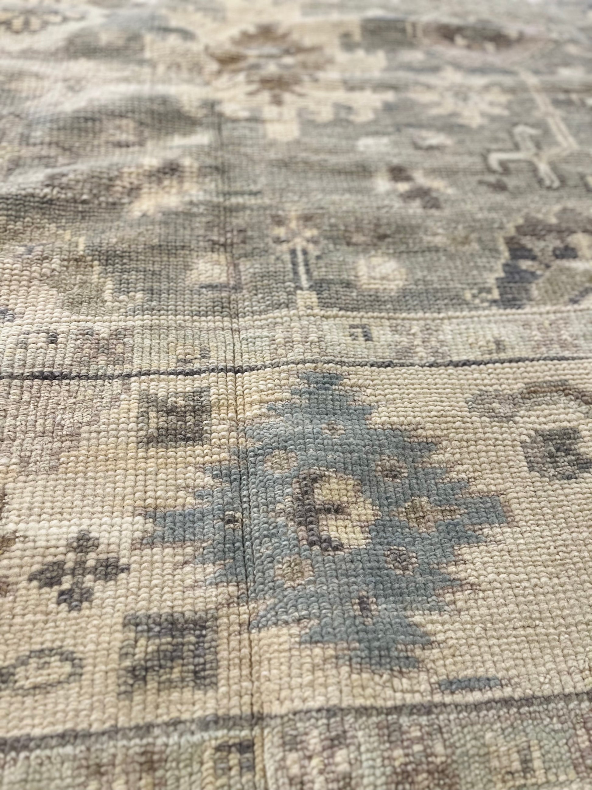 Modern Wool Oushak Rug, hand knotted with 100% New Zealand wool using a Turkish knot.