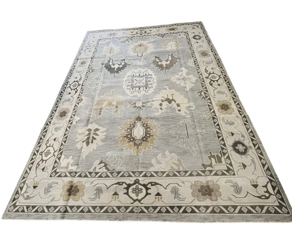 Modern Wool Oushak Rug, hand knotted with 100% New Zealand wool using a Turkish knot.