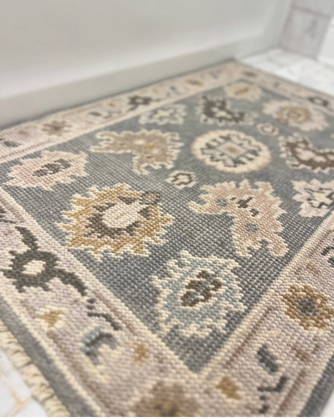 Modern Wool Oushak Rug, hand knotted with 100% New Zealand wool using a Turkish Knot.