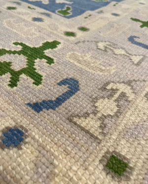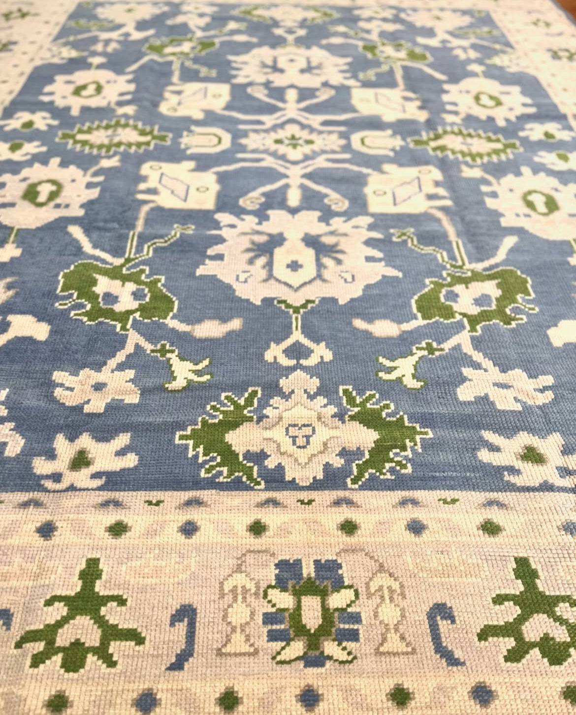 Modern Wool Oushak Rug, hand knotted with 100% New Zealand wool using a Turkish Knot.