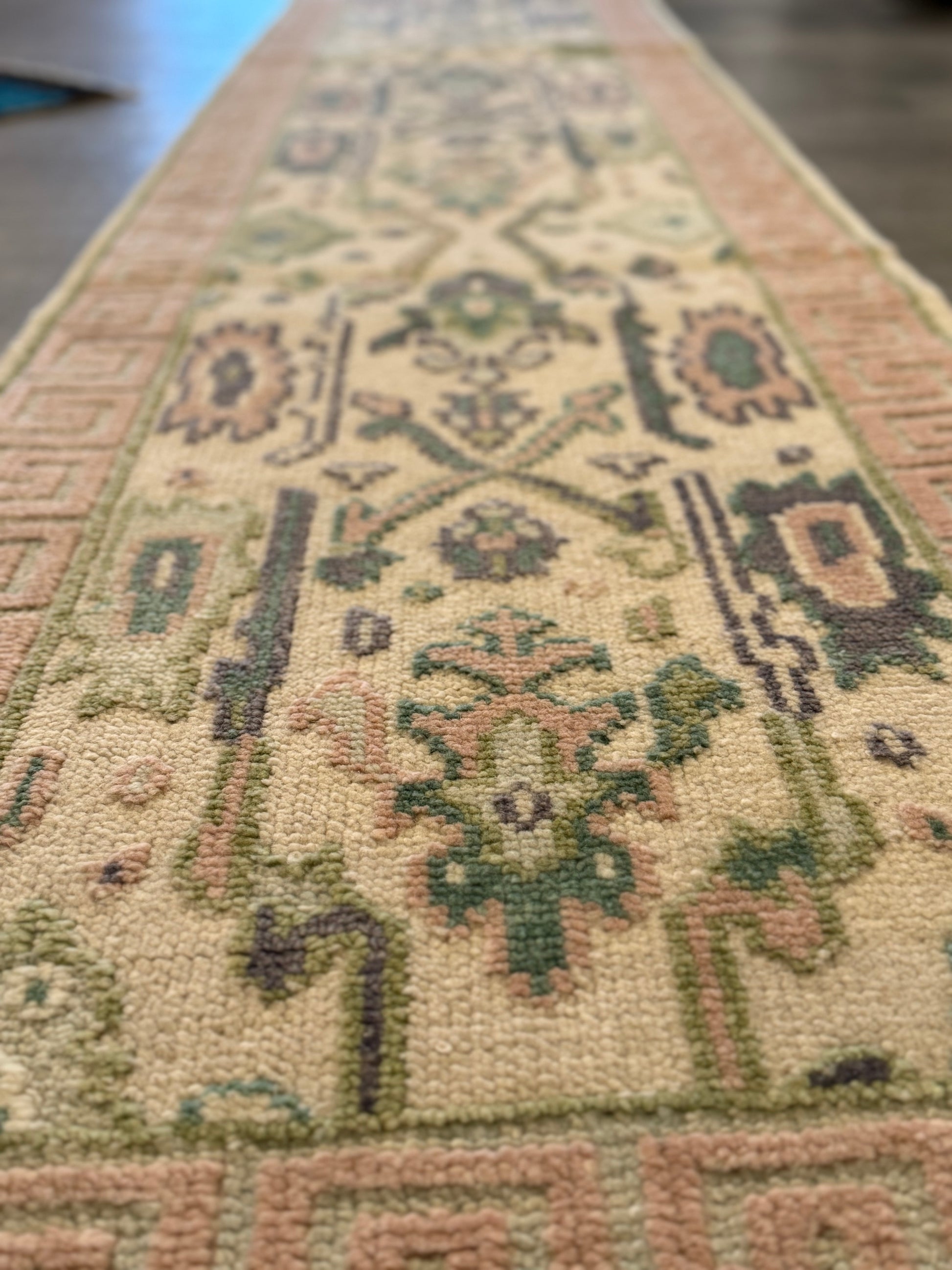Modern Wool Oushak Rug, hand knotted with 100% New Zealand wool using a Turkish Knot.