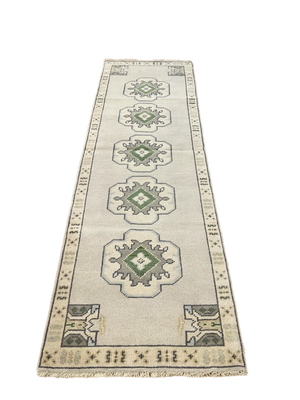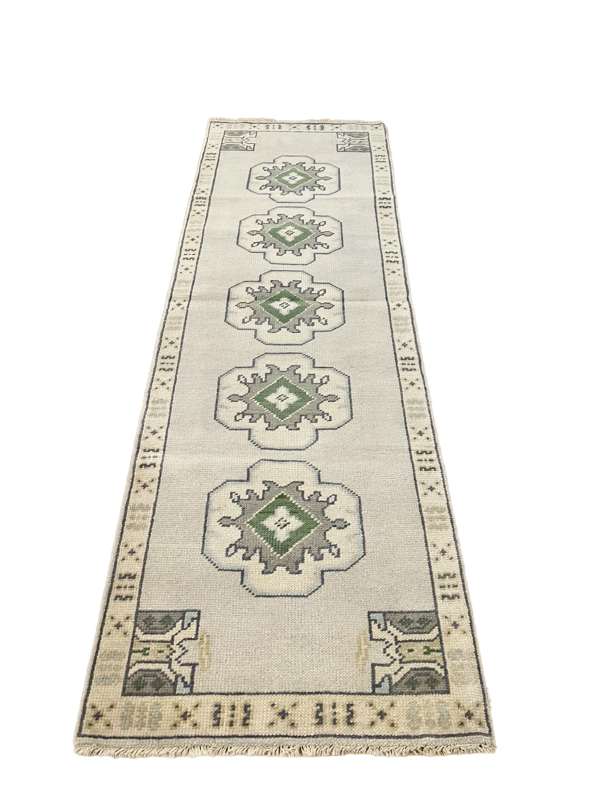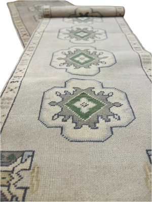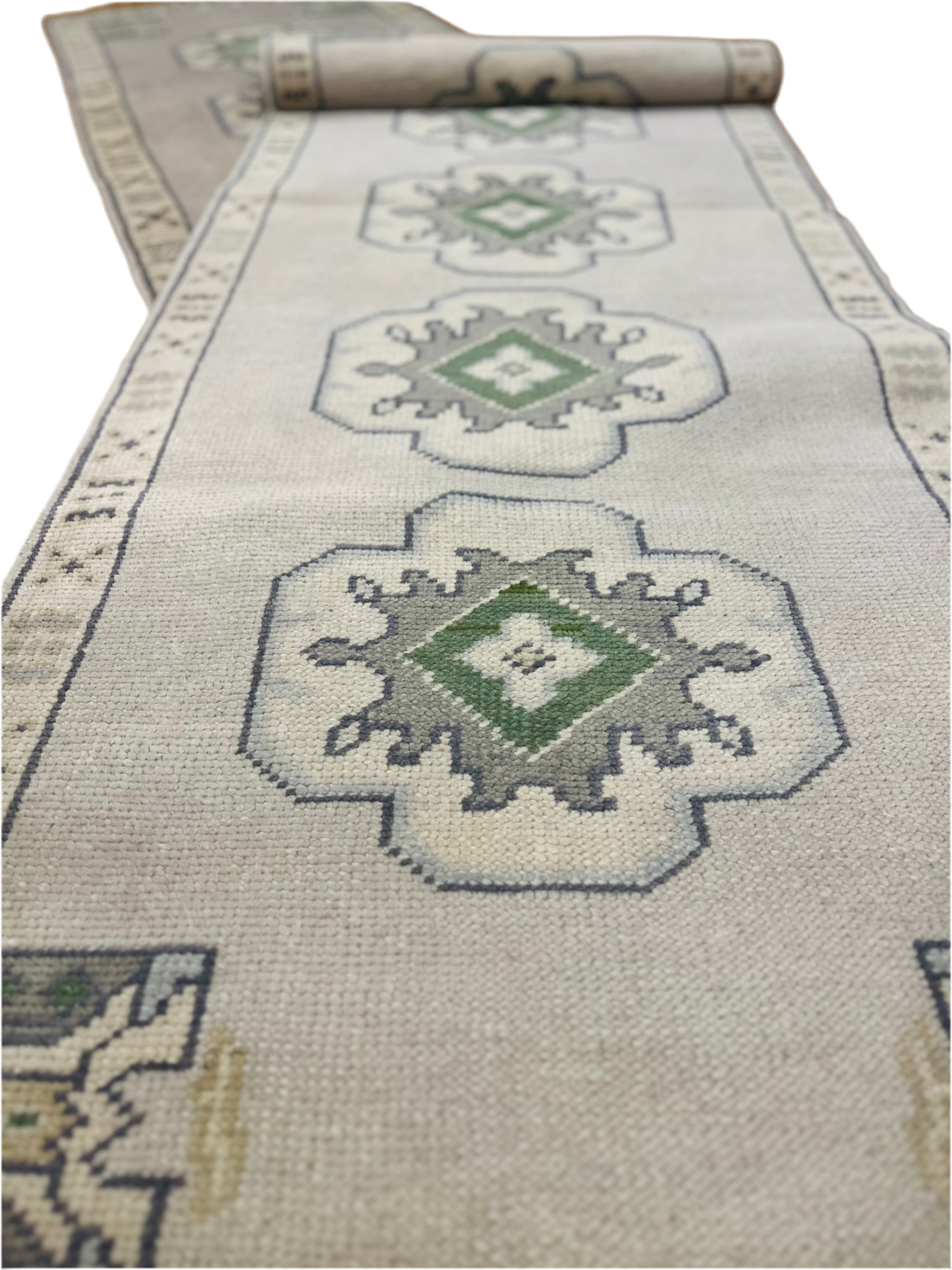 ACTUAL MEASUREMENTS 2’8”x 7’10”Modern Wool Oushak Rug, hand knotted with 100% New Zealand wool using a Turkish knot. Need a custom size? Reach out under the “Contact Us” tab!