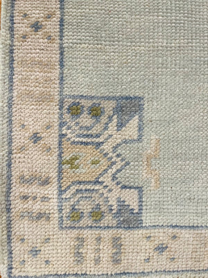 Modern Wool Oushak Rug, hand knotted with 100% New Zealand wool using a Turkish knot.