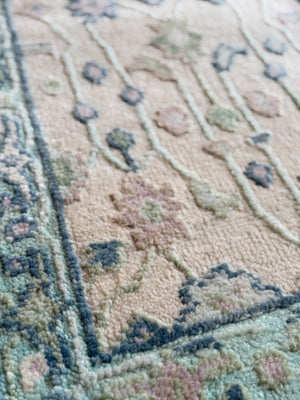 Modern Wool Oushak Rug, hand knotted with 100% New Zealand wool using a Turkish knot.