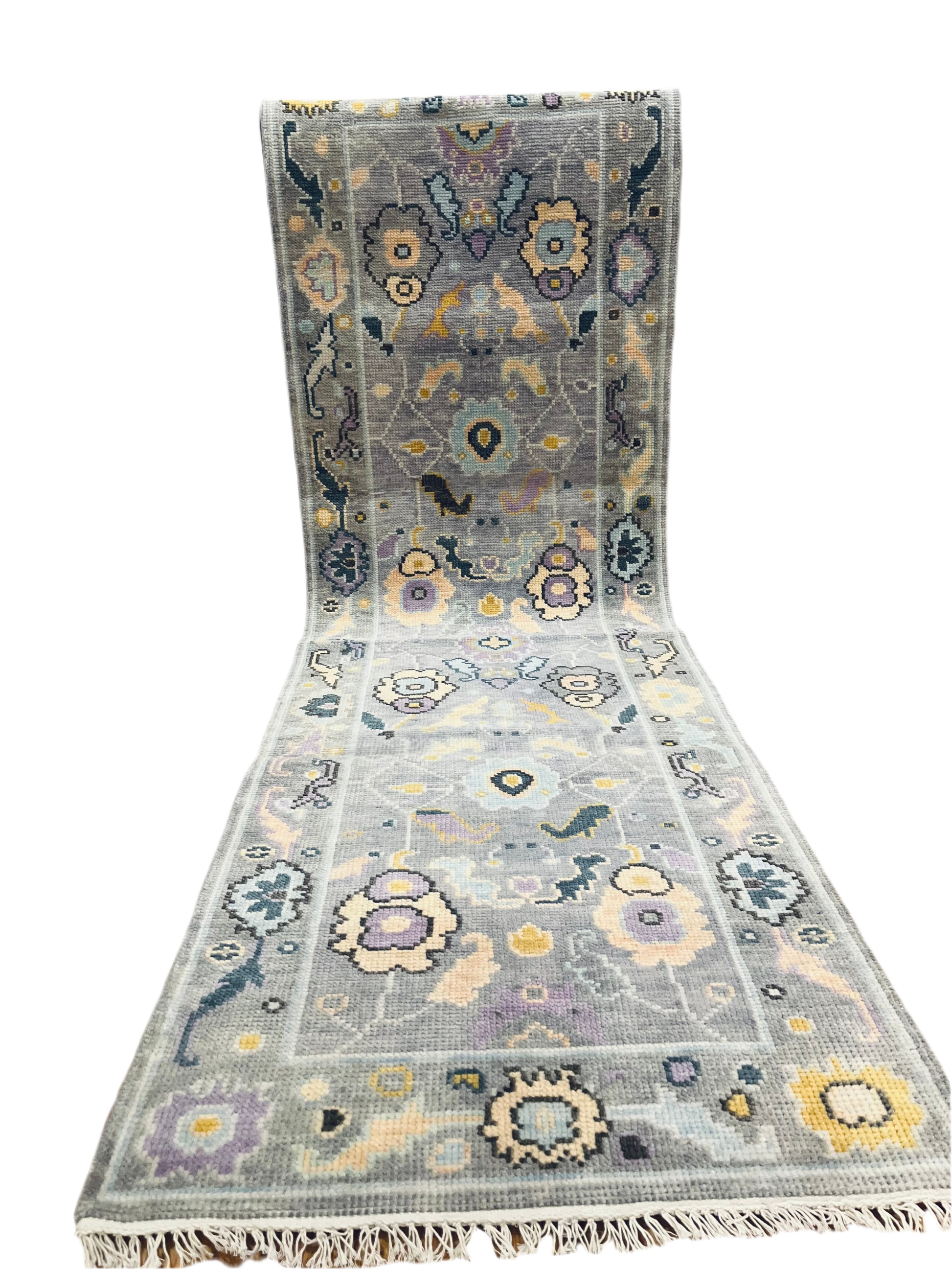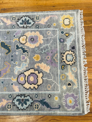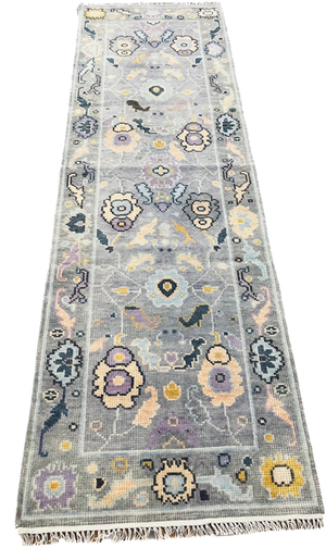 Modern Wool Oushak Rug, hand knotted with 100% New Zealand wool using a Turkish knot.