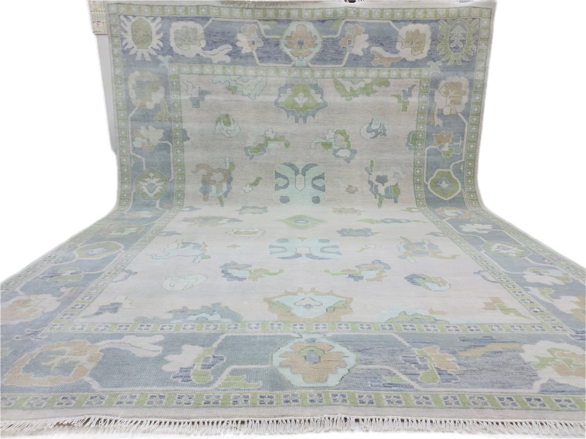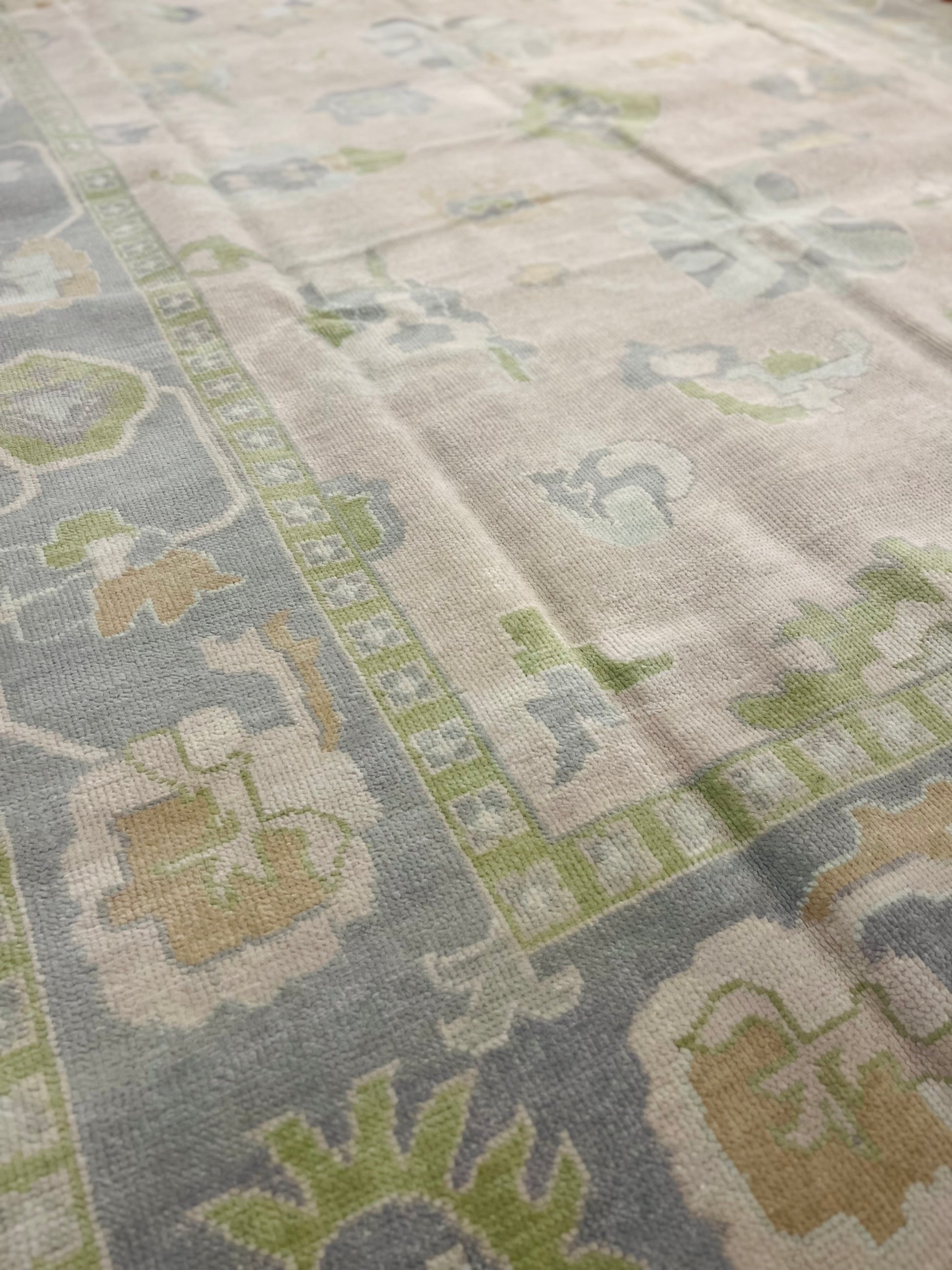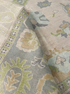 Modern Wool Oushak Rug, hand knotted with 100% New Zealand wool using a Turkish knot.