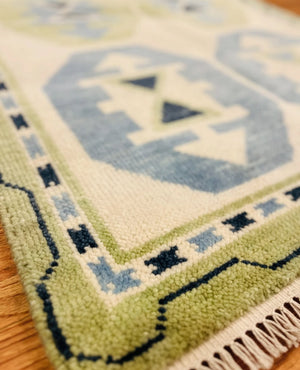 Modern Wool Oushak Rug, hand knotted with 100% New Zealand wool using a Turkish Knot.