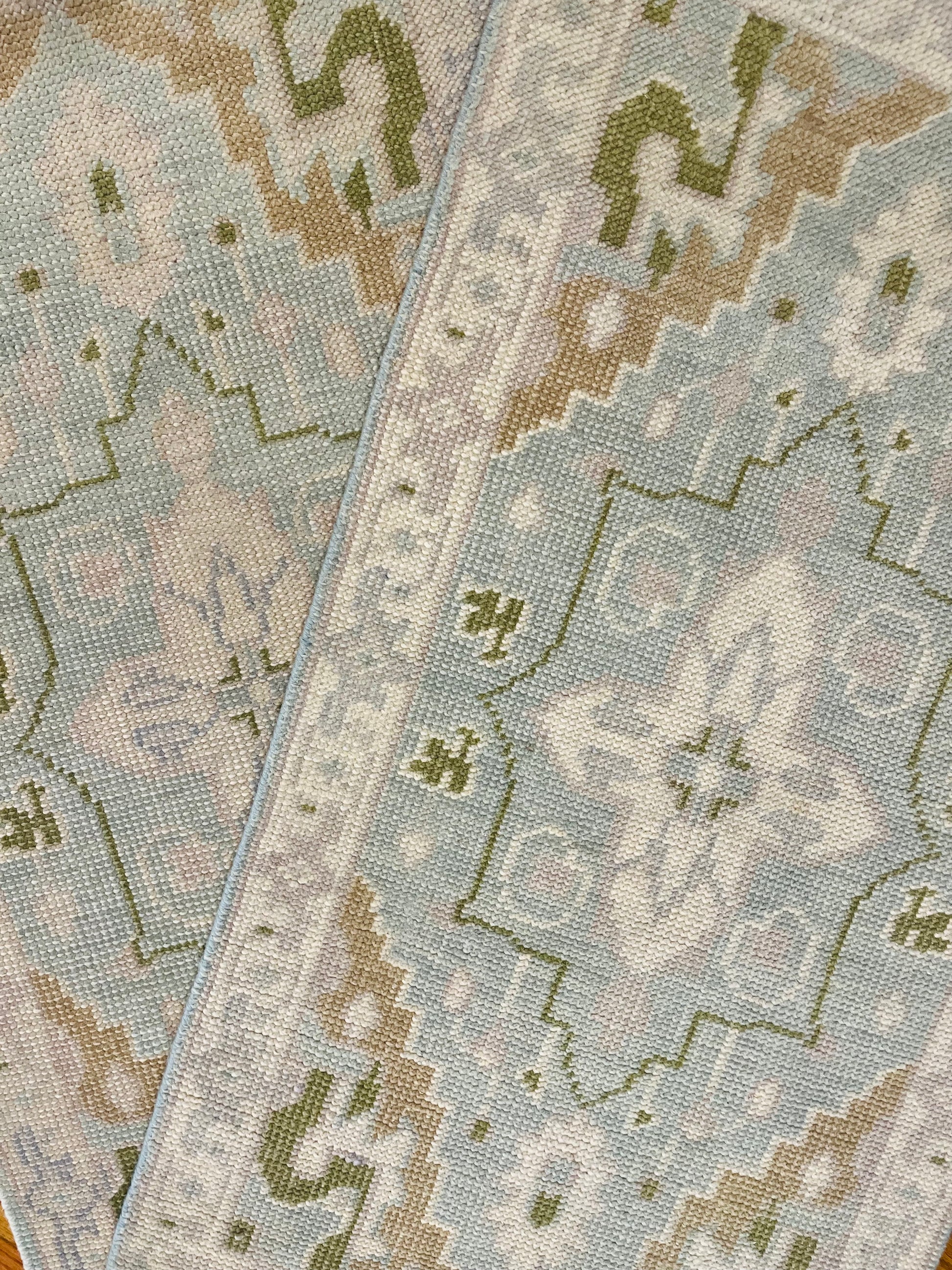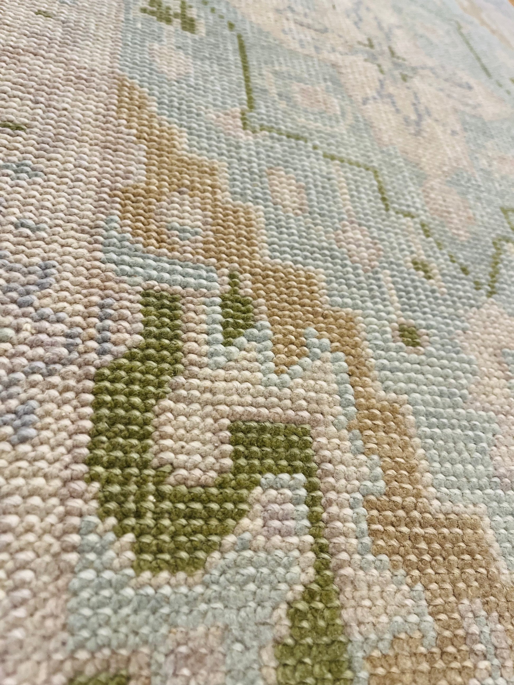 Modern Wool Oushak Rug, hand knotted with 100% New Zealand wool using a Turkish knot.
