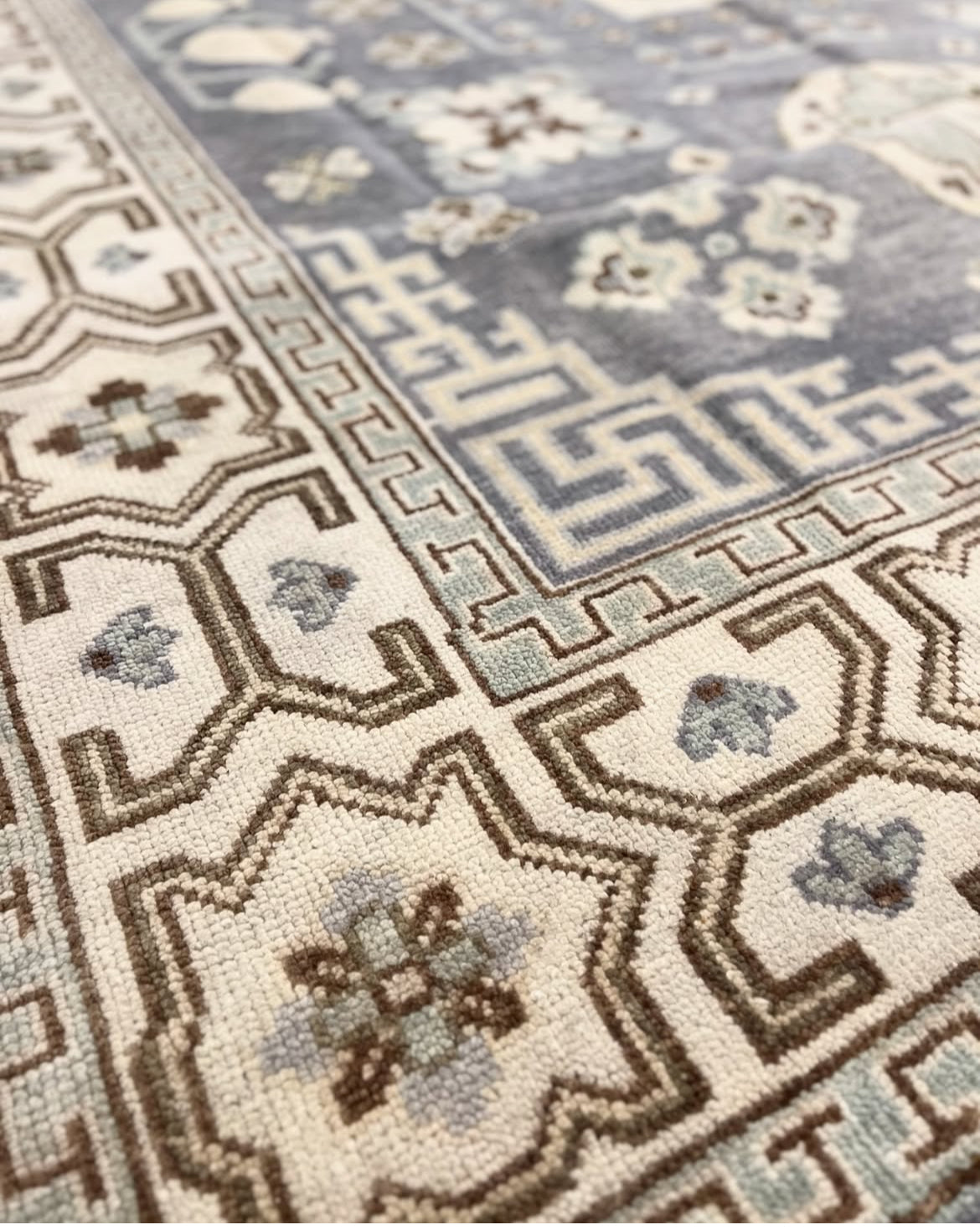 Modern Wool Oushak Rug, hand knotted with 100% New Zealand wool using a Turkish knot.